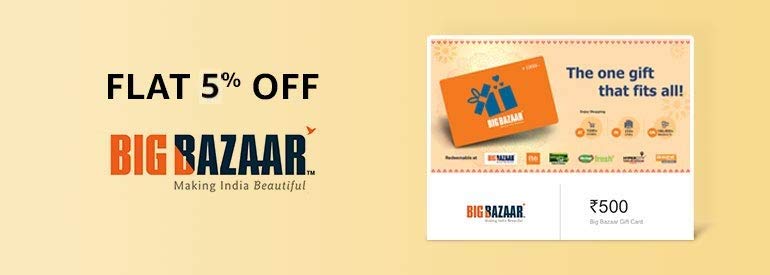 Big Bazaar Gift Cards & Voucher Offers: Upto Cashback ... Big Bazaar gift card offers have many benefits it saves time and makes your online payment easy. It has many other benefits Big Bazaar gift vouchers can be also used for Corporate gifting, motivating the company employees or giving them as an incentive, or send it to your wife or friend as and surprise gift.