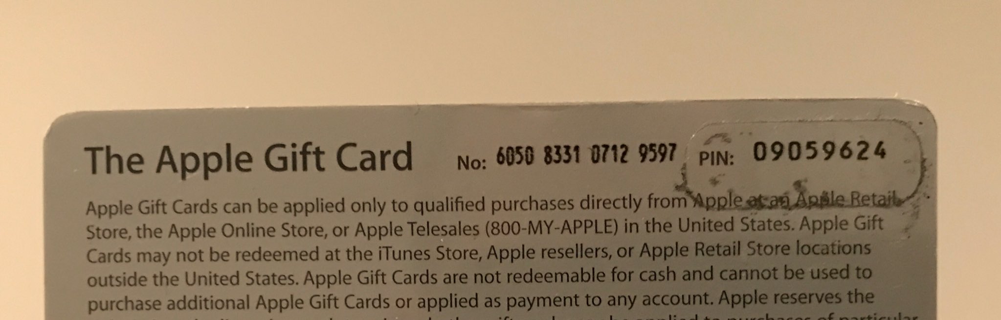Buy Apple Gift Cards - Apple Beware of gift card scams. Do not share your code. Valid only for U.S. transactions in Apple properties. For assistance, visit support.apple.com/giftcard(Opens in a new window)or call 800-275-2273. Not redeemable at Apple resellers or for cash, and no resale, refunds, or exchanges, except as required by law.