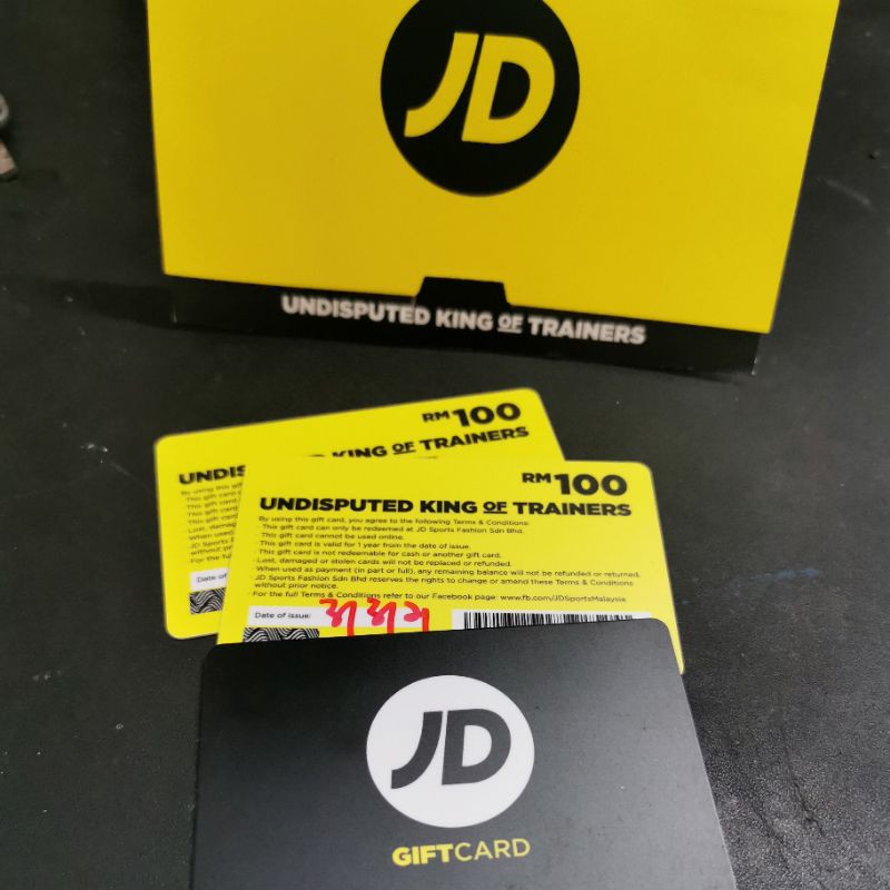 Sneakers, Sports Fashion, Clothing & Accessories - Faqs - JD Sports Ireland Gift cards can not be used online. Gift cards can be bought from €5 to €300. Get free delivery when you spend over €70. Gift Cards are valid for twelve months from date of purchase. The Gift Card will expire and any remaining balance will reduce to nil if it is not used within a 12 month period. Click here to purchase a gift card. £100 JD Sports Gift Card - Park Christmas Savings JD Sports £100 Gift Card. Get the ultimate gift card. Perfect for everyone who loves all the latest and greatest branded street style, from the best brands ...